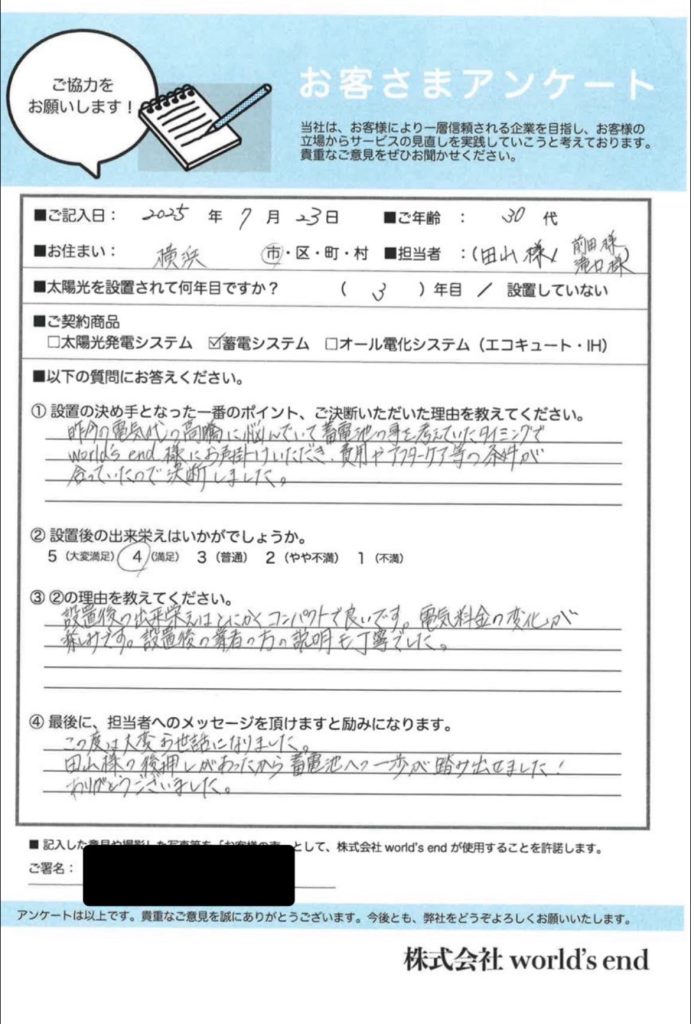 神奈川県横浜市Y様邸:オムロンマルチ6.5kWhハイブリッド全負荷(KPBP-A-SET-HYB65-T)