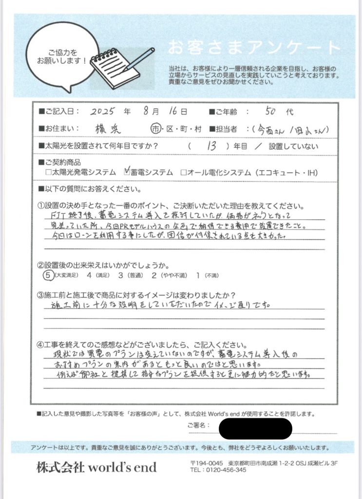 神奈川県横浜市Y様邸:オムロンマルチ6.5kWhハイブリッド全負荷(KPBP-A-SET-HYB65-T)