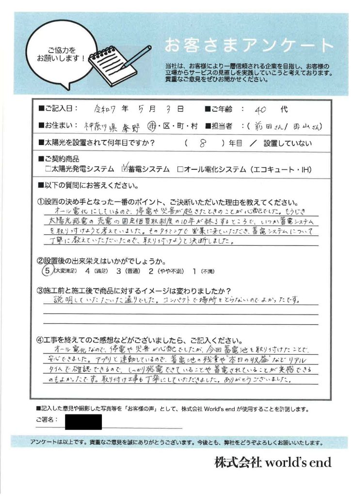 神奈川県海老名市M様邸:オムロンマルチ6.5kWhハイブリッド全負荷(KPBP-A-SET-HYB65-T)