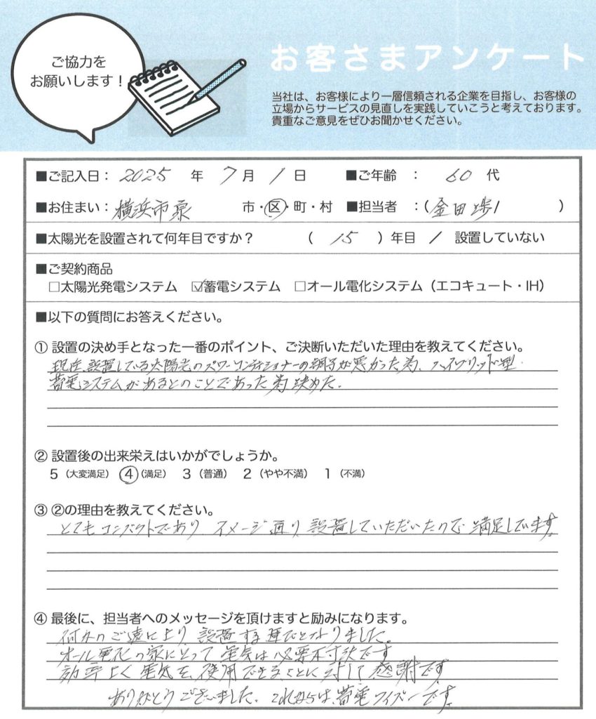 神奈川県横浜市Y様邸:オムロンマルチ6.5kWhハイブリッド全負荷(KPBP-A-SET-HYB65-T)